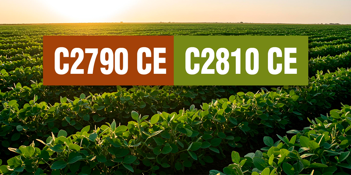 Já a C2810 CE pertence ao grupo de maturação 8.1 e combina alto potencial produtivo com atributos agronômicos que contribuem para maior estabilidade no campo. Possui tolerância ao nematoide de cisto (raça 3) e bom potencial de engalhamento, além de apresentar boa sanidade foliar e tolerância à mancha-alvo (Corynespora cassiicola). Assim como a C2790 CE, conta com a tecnologia Conkesta E3®, que amplia a janela de aplicação de herbicidas pós-emergentes, oferecendo mais flexibilidade no controle de plantas daninhas.