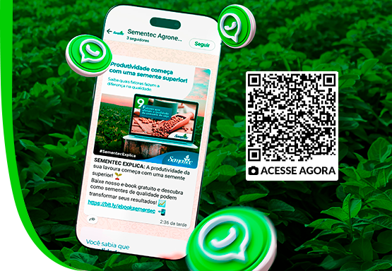 Além disso, disponibilizamos um grupo exclusivo no WhatsApp, onde são compartilhadas informações técnicas, avisos importantes, conteúdos do campo e novidades da Sementec, de forma direta e objetiva.