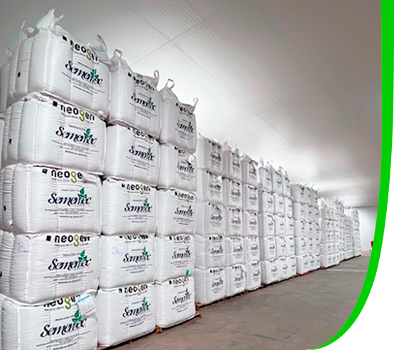 Após a colheita e o beneficiamento, as sementes da Sementec são armazenadas em câmaras frias, com controle de temperatura e condições ambientais.