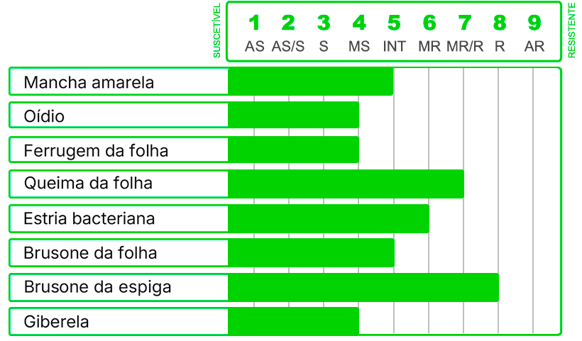 - Resistência à brusone da espiga, proporcionando maior segurança na semeadura de primeira janela no Cerrado.