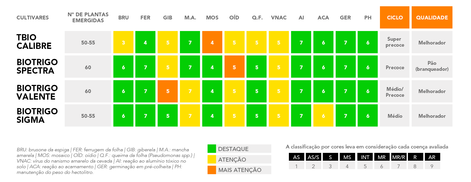 Recomendações técnicas seguem os parâmetros da Biotrigo Genética e podem variar segundo as