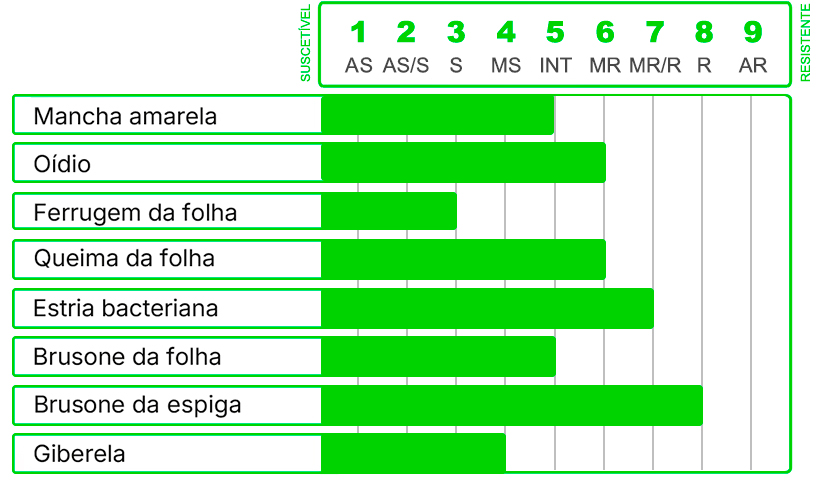 - Pode ser cultivada em áreas com presença de ferrugem da folha e brusone da folha, mas exige monitoramento e manejo fitossanitário adequado.