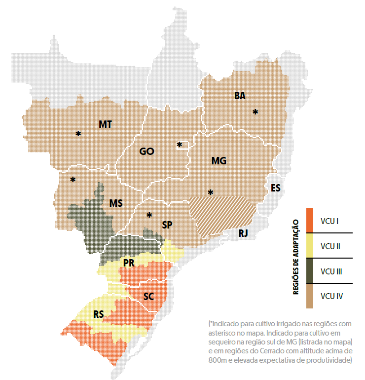 - Indicado para regiões irrigadas ou de altitude elevada no Cerrado